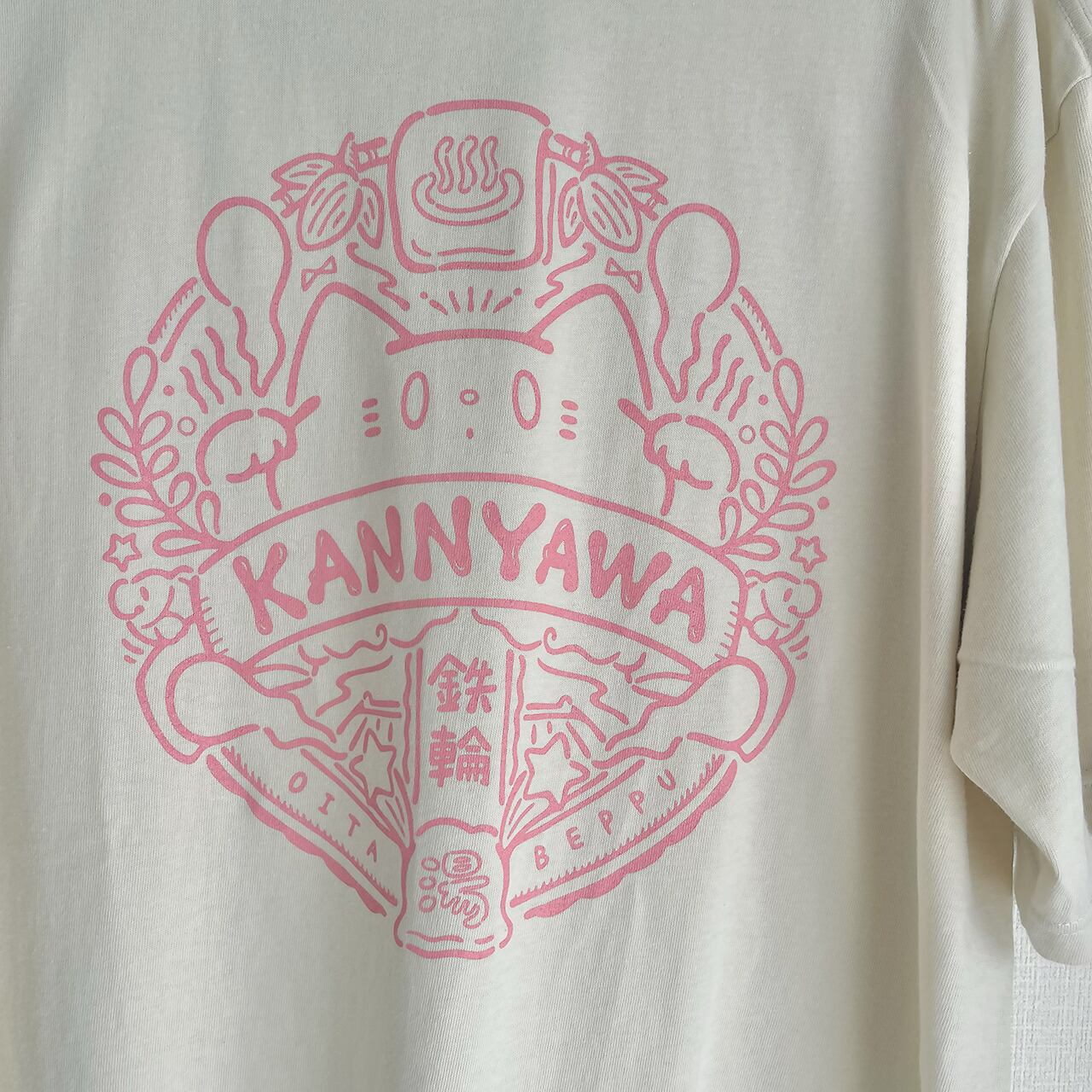 【送料込】かんにゃわ Tシャツ( ライトベージュ × ローズレッド)